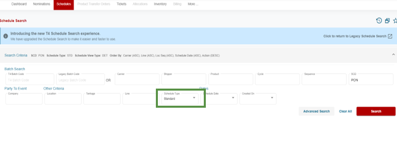 - Select SEARCH from the SCHEDULES dropdown menu.