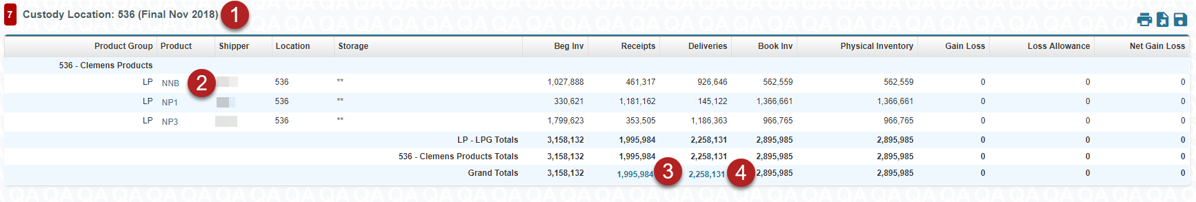 Report Type: Custody Summary, EP Equivalent, Facility Liftings
