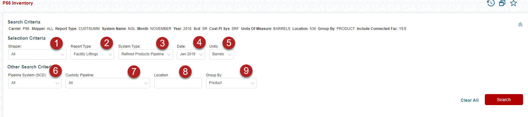 System Type: Custody Statement will show All, Crude, Refined, NGL