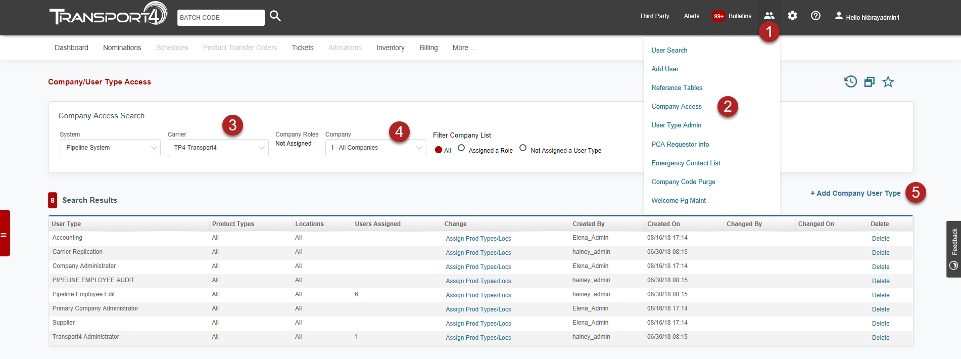 4. Carrier or T4 adds company access to their assets, including roles and company access: