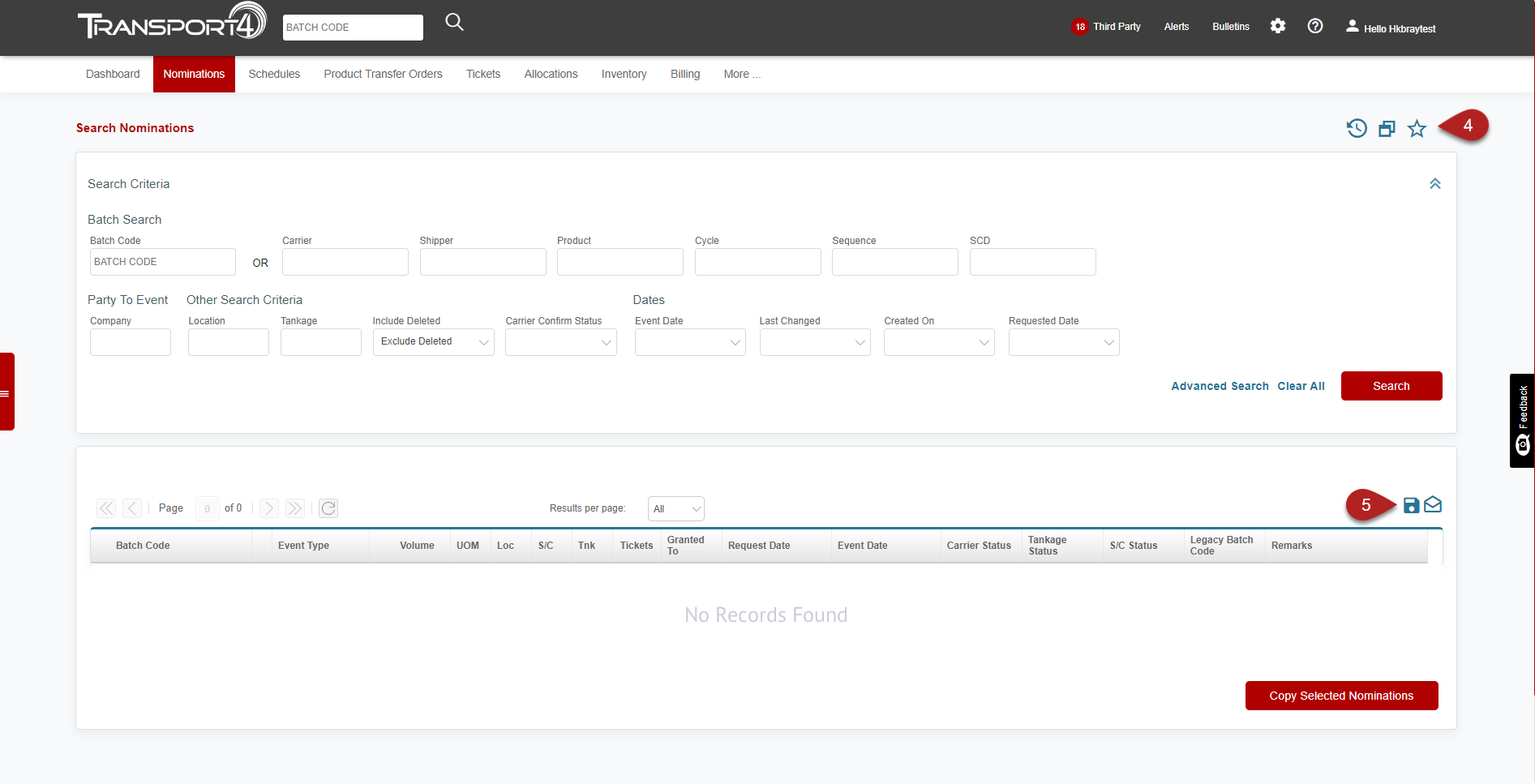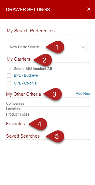 The Drawer controls the data displayed on the dashboard and dictates the actions of searches on the following pages: Nominations, Schedules, PTOs (Product Transfer Orders) and Tickets (if the "Drawer" is selected as a search preference).