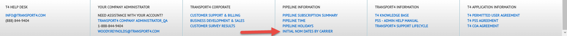 You can also find this information by clicking on Pipeline Information at the bottom of the T4 Dashboard and going to Initial Nom Dates by Carrier