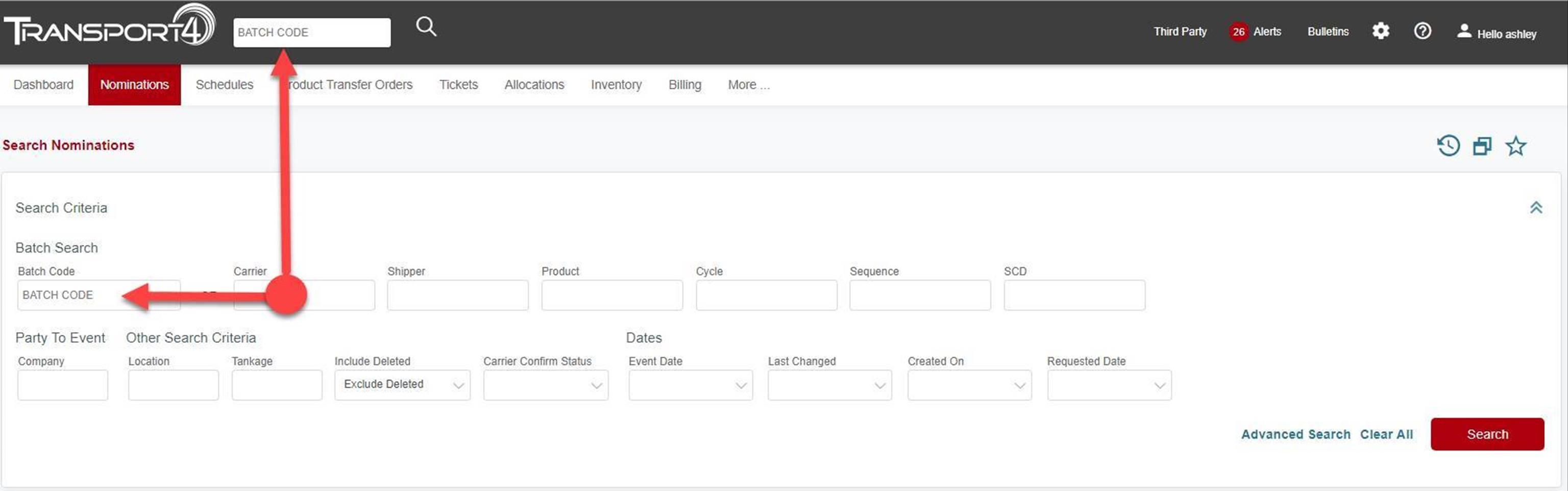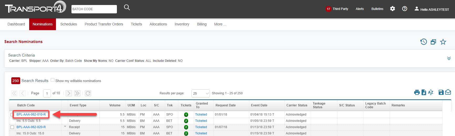 After Searching for your Nomination, users can use the context menu or click on the batch code
