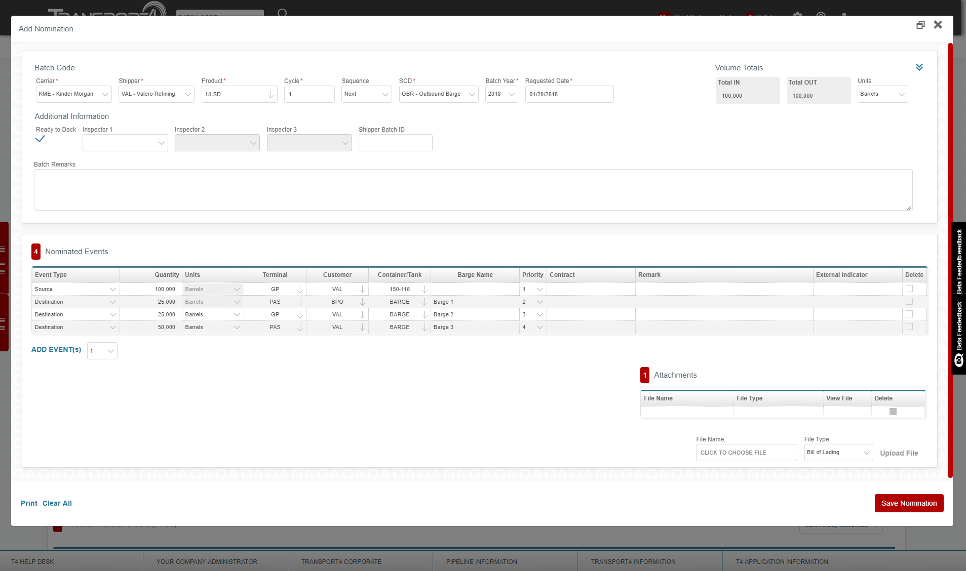 This article will cover Barge/Ship Terminal Nominations. For an overview of Terminal Nominations, please refer to the following article: Terminal Nominations Overview