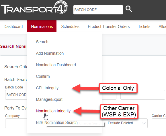 The Nomination Integrity Program is published in T4 under the Nominations -> Nomination Integrity tab for West Shore (WSP) and Explorer Pipeline (EXP). Colonial publishes NIP data under the CPL Integrity submenu.