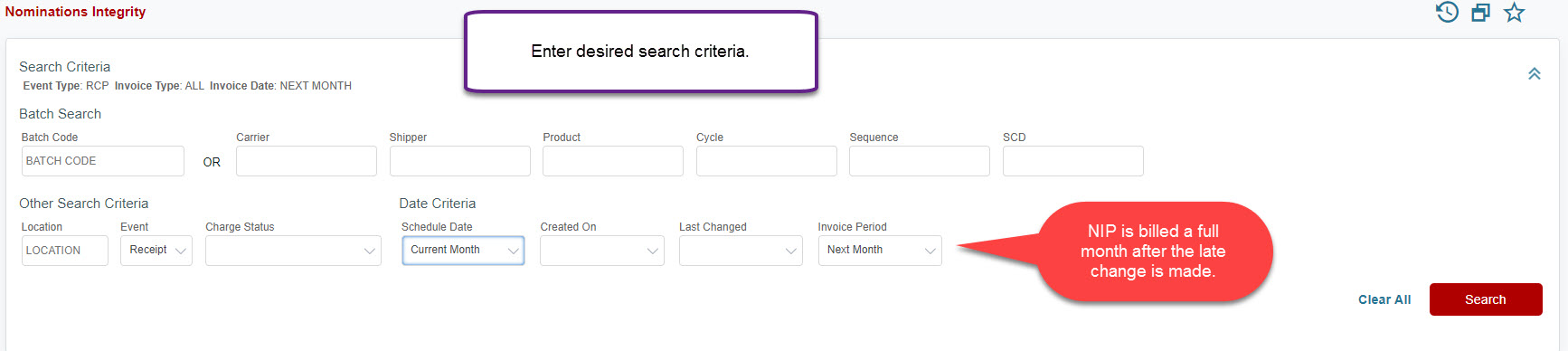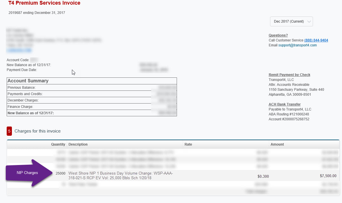 If you have questions about the Nomination Integrity Charge, please contact the carrier. Transport4 is not able to change, alter, waive, or delete a NIP charge.