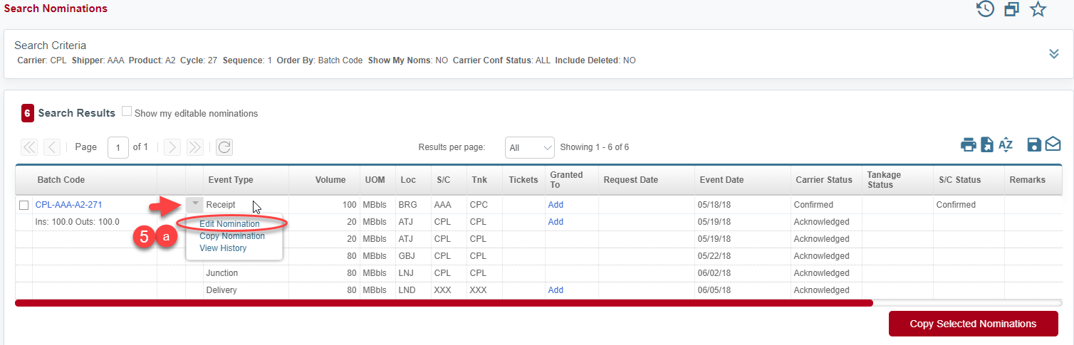 *Nominations can be edited directly from the Nomination Search page using the context arrow OR from the Batch Details screen.