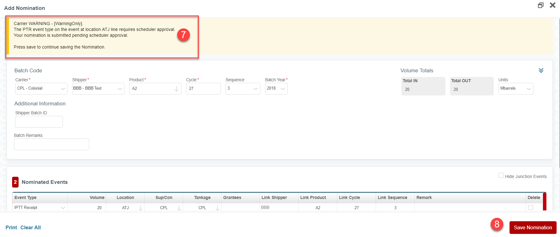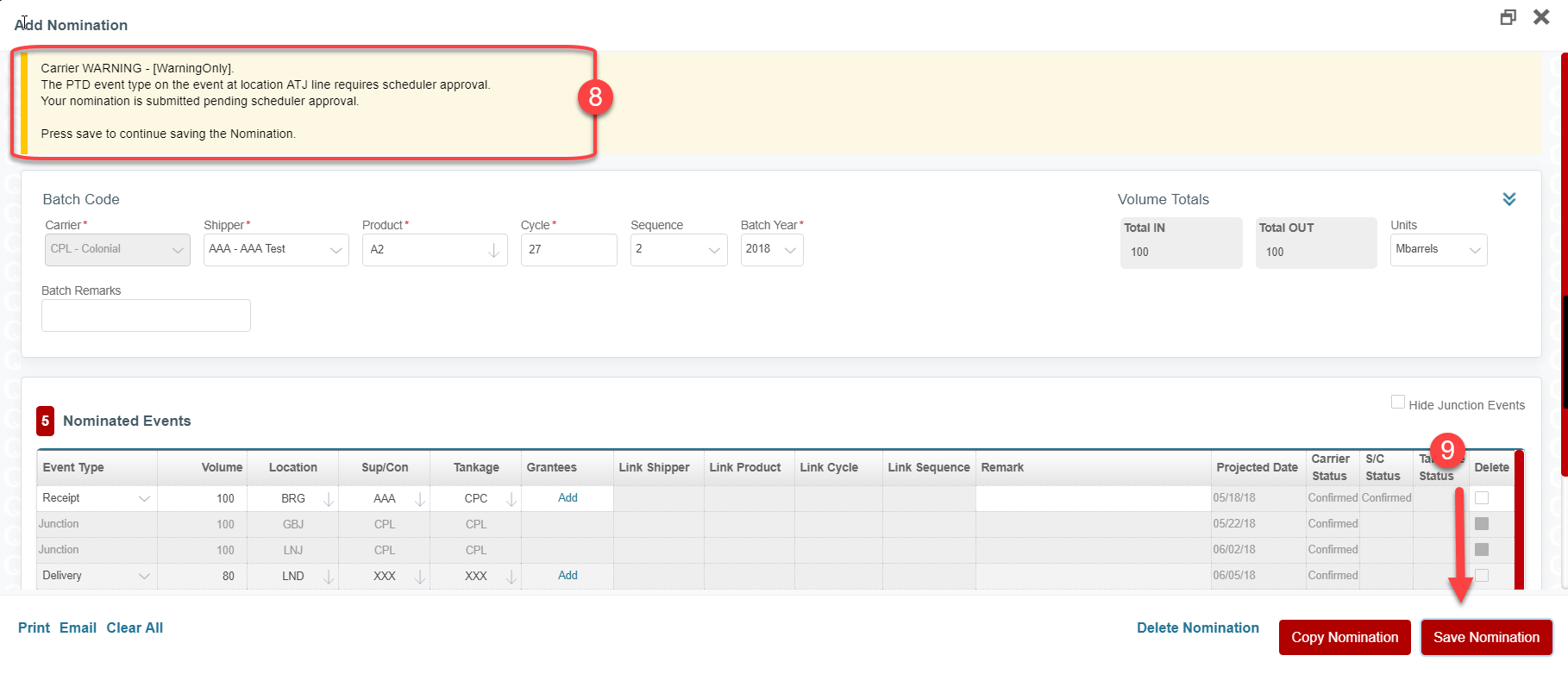 Step 8. Save Nomination again.