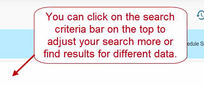 You can click on the search criteria bar on the top to adjust your search more or find results for different data.