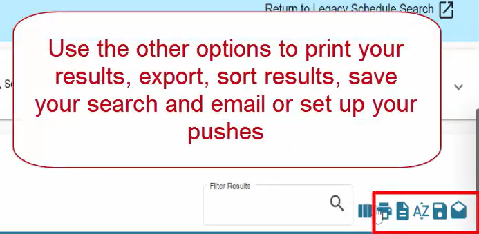 Use the other options to print your results, export, sort results, save your search, and email to set up your pushes.