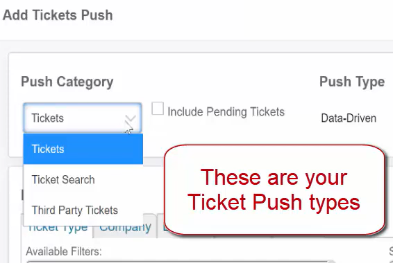These are your Ticket Push types.