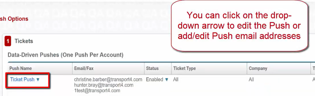 You can click on the dropdown arrow to edit the Push or add/edit Push email addresses.