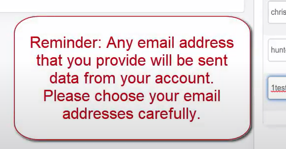 Reminder: Any email address that you provide will be sent data from your account.