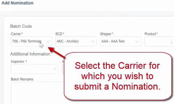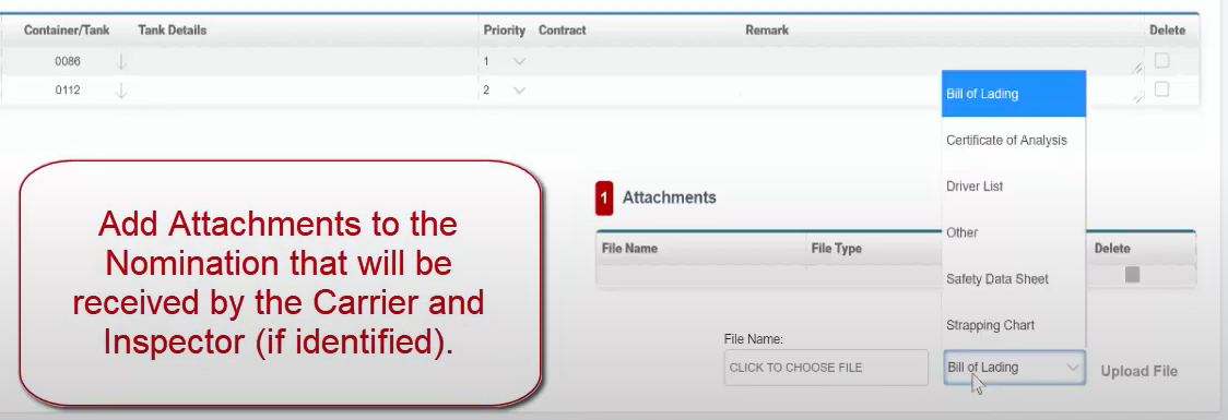 Add Attachments to the Nomination that will be received by the Carrier and Inspector (if identified).