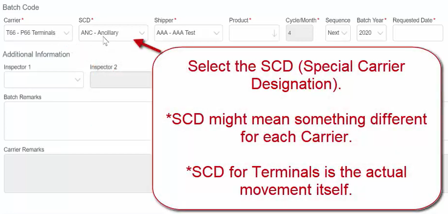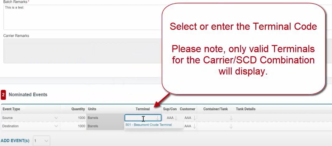 Please note, only valid Terminals for the Carriers/SCD Combination will display.