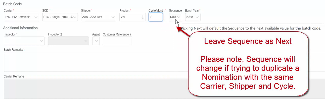 Please notes, Sequence will change if trying to duplicate a Nomination with the same Carrier, Shipper, and Cycle.