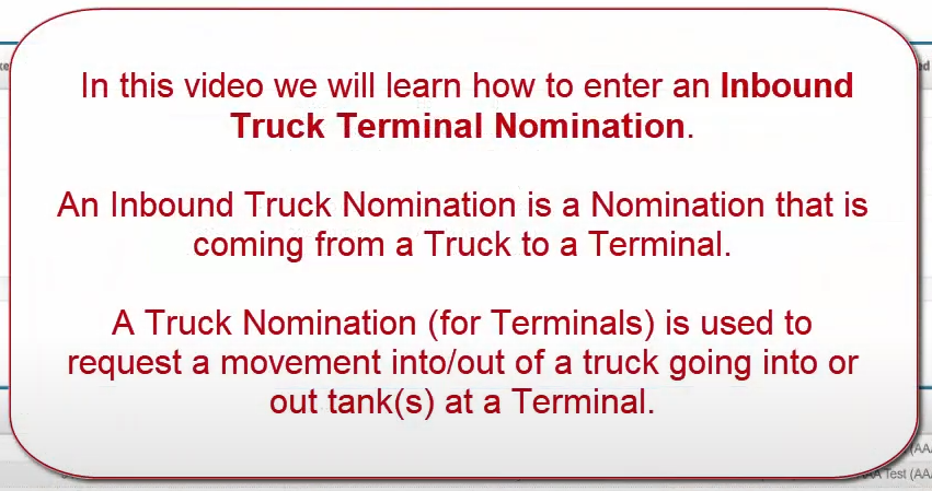 In this video, we will learn how to enter an Inbound Truck Terminal Nomination.
