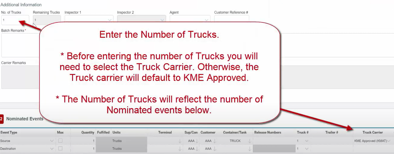 *Before entering the number of Trucks you will need to select the Truck Carrier. Otherwise, the Truck carrier will default to KME Approved.