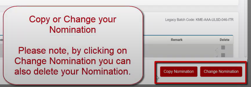 Please note, by clicking on Change Nomination you can also delete your Nomination.