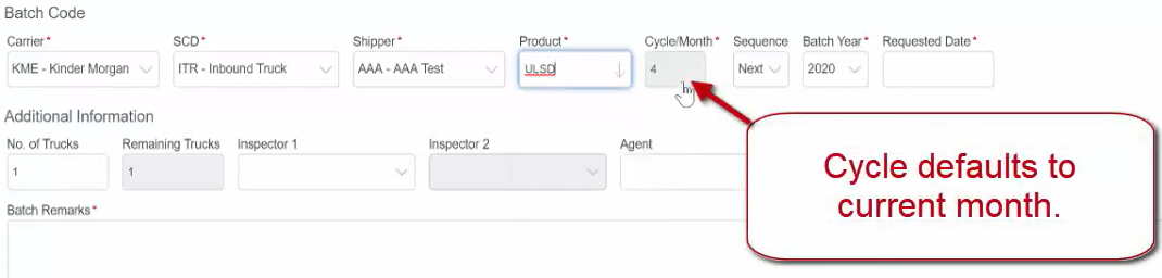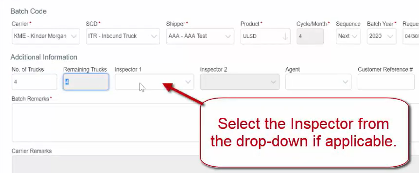 *Because this is an Inbound Truck, the source containers will auto populate with Truck.