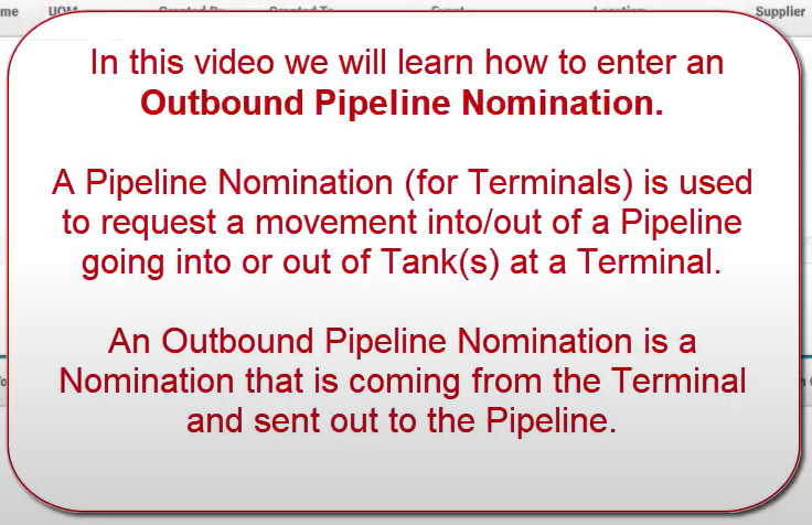In this video, we will learn how to enter an Outbound Pipeline Nomination.