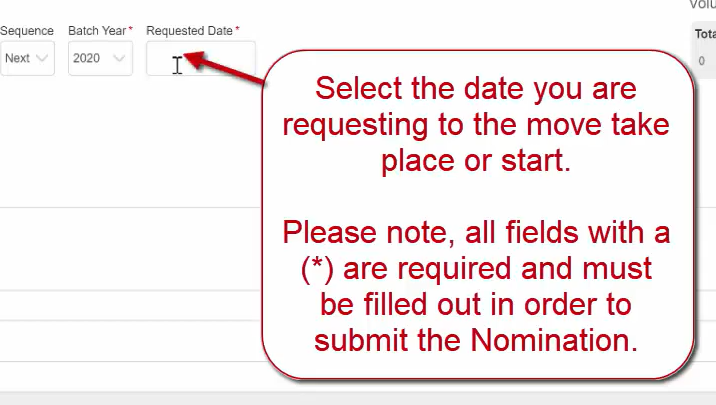 Select the date you are requesting for the move to take place or start.