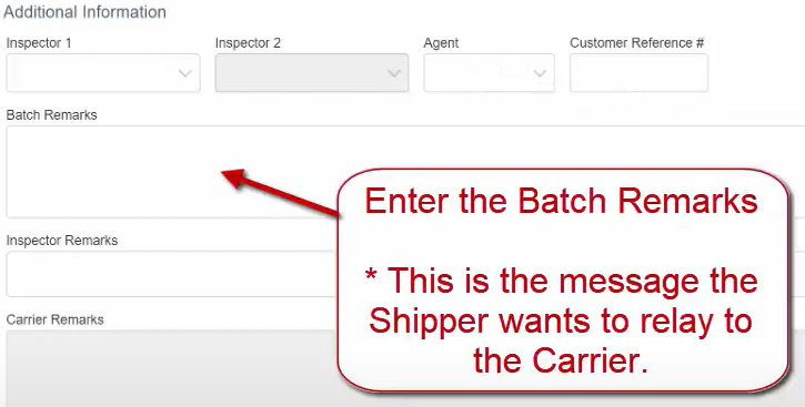 *This is the message the Shipper wants to relay to the Carrier.