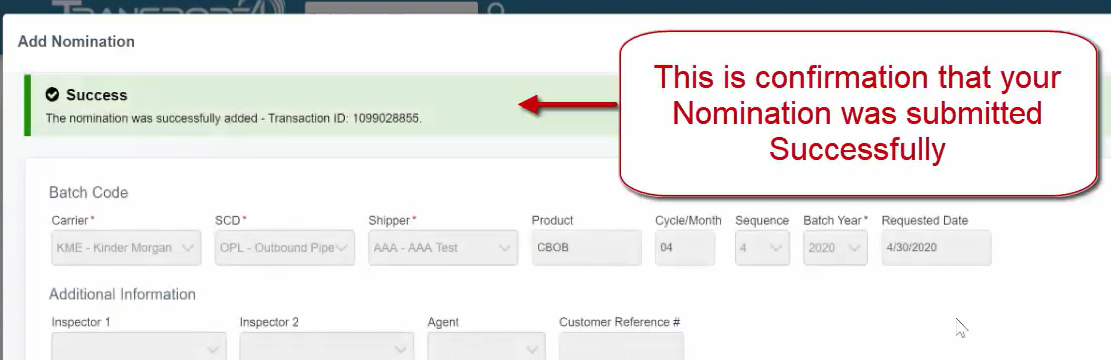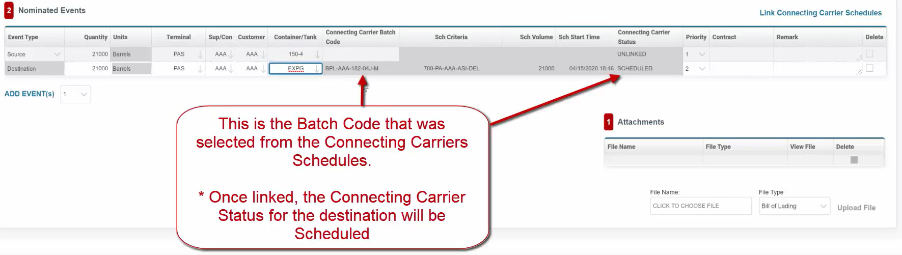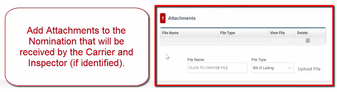Add Attachments to the Nomination that will be received by the Carrier and Inspector (if identified).