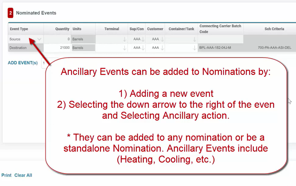 *The can be added to any nomination or be a standalone Nomination. Ancillary Events include (Heating, Cooling, etc.)