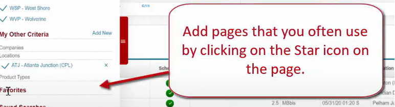 Add pages that you often use by clicking on the Star icon on the page.
