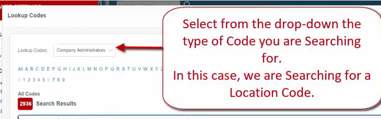 In this case, we are Searching for a Location Code.