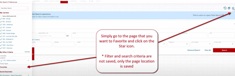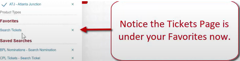 Notice the Tickets Page is under your Favorites now.