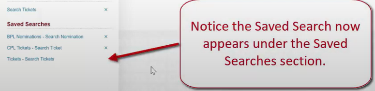 Notice that Saved Search now appears under the Saved Searches section.