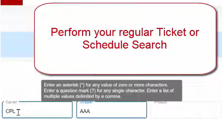 Perform your regular Ticket or Schedule Search.