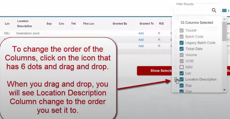 When you drag and drop, you will see Location Description Column change to the order you set it to.