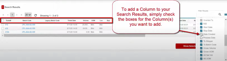 To add a Column to your Search Results, simply check the boxes for the Column(s) you want to add.