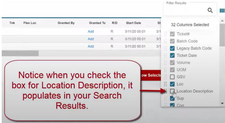 Notice when you check the box for Location Description, it populates in your Search Results.