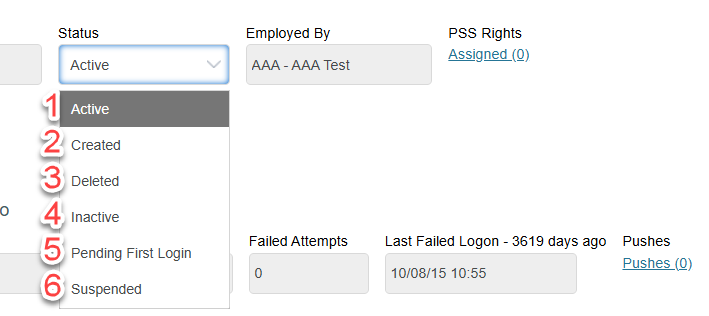 5. Pending First Login - This status appears after activating the newly created account. Once the user logs into T4, the account status will change to Active.