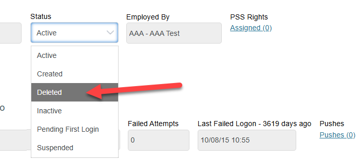 4) Select Deleted when the account is no longer needed.